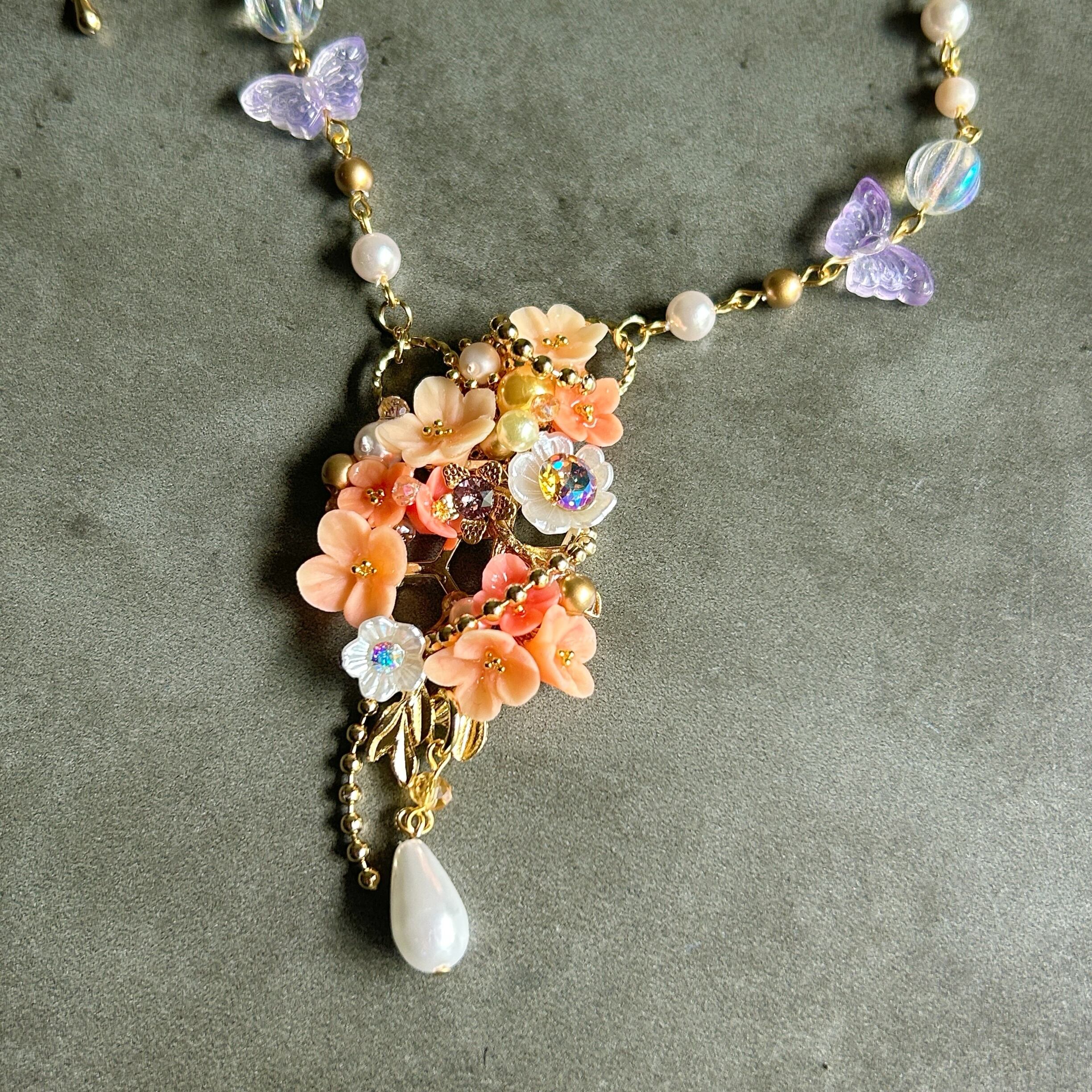 ガラス、メタルパーツ、樹脂、クレイ、その他沢山の素材を組み合わせ、一つ一つ手作業で作っています。樹脂及びクレイの色味は一つずつ調色しております。若干の個体差がありますことをご了承下さい。