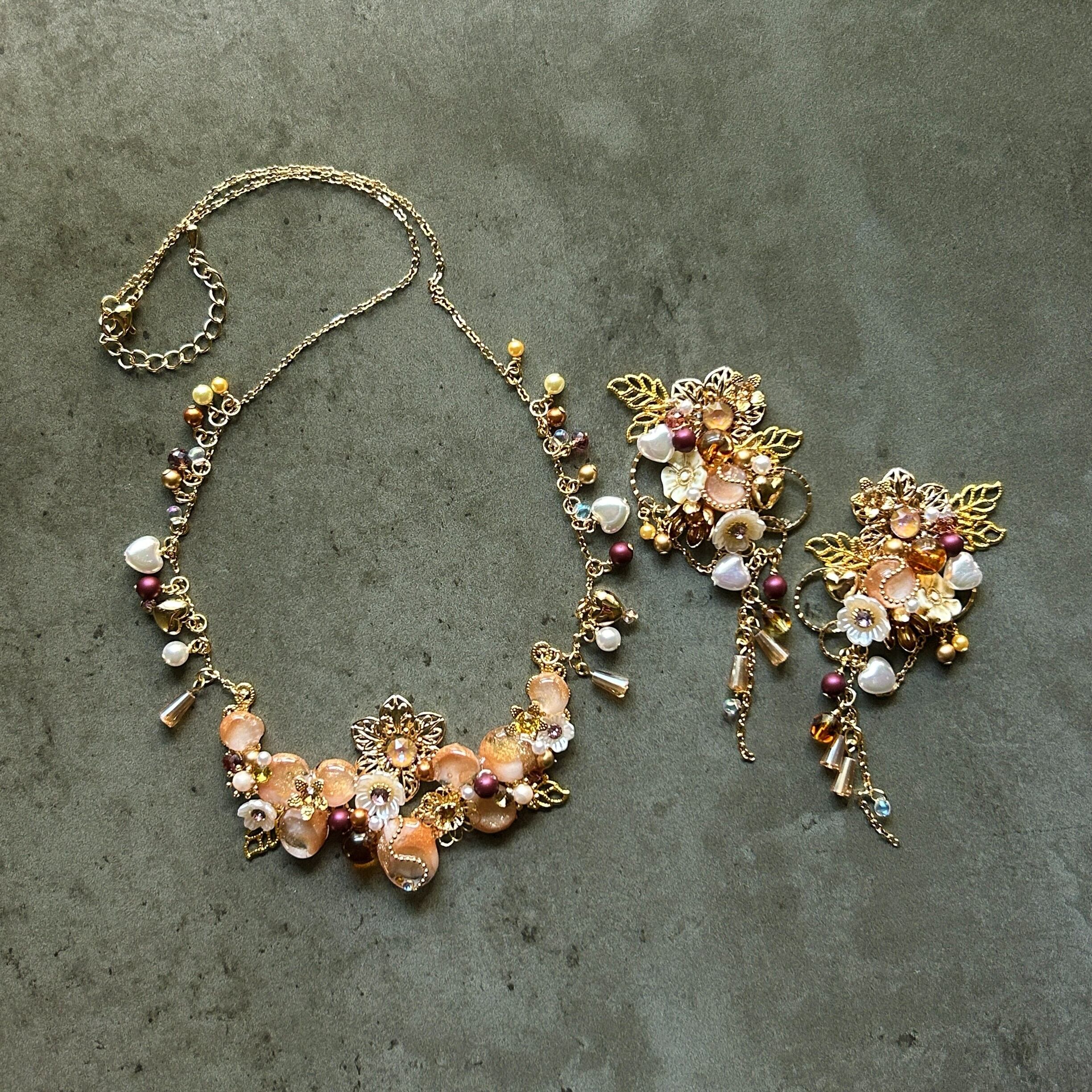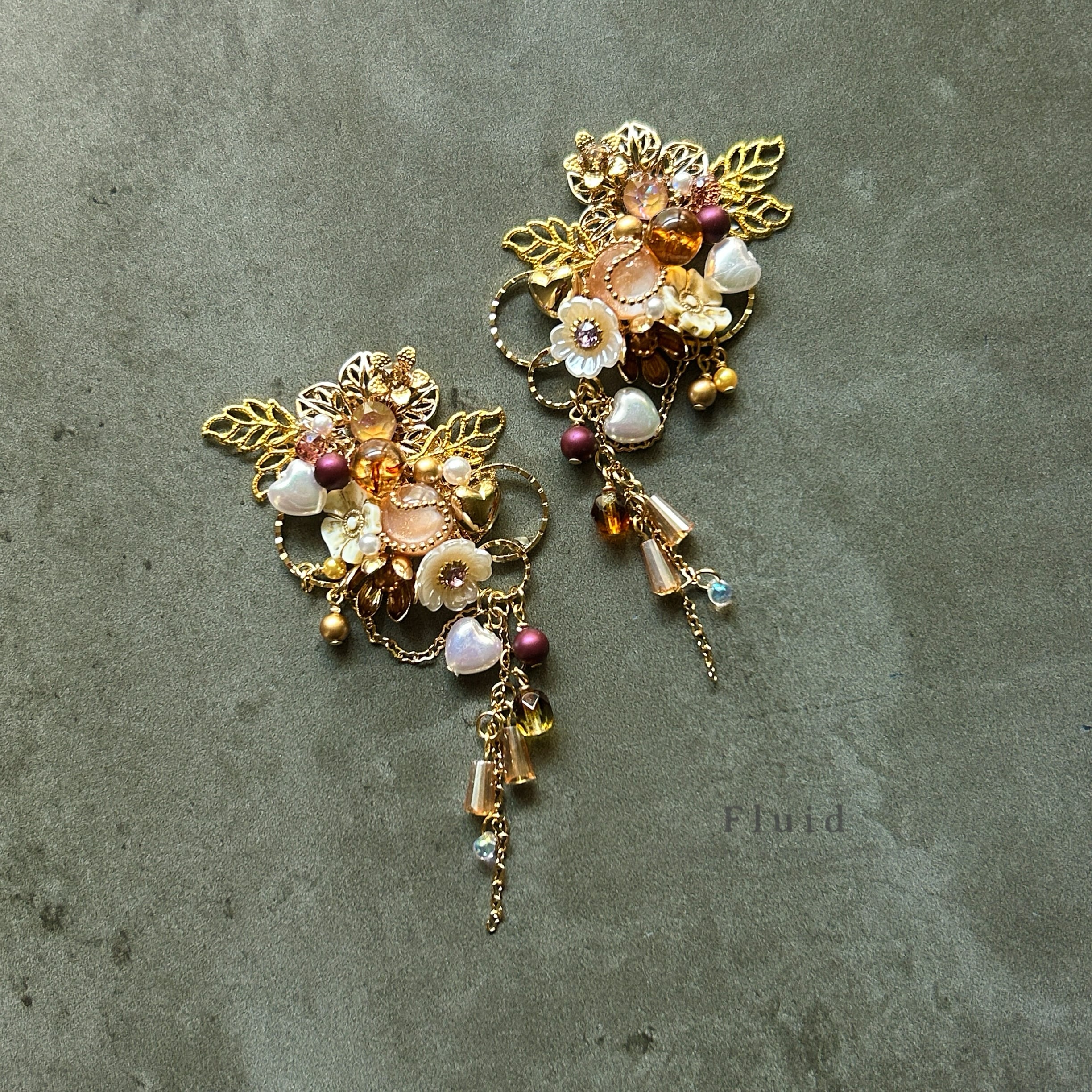 ガラス、メタルパーツ、樹脂、クレイ、その他沢山の素材を組み合わせ、一つ一つ手作業で作っています。樹脂及びクレイの色味は一つずつ調色しております。若干の個体差がありますことをご了承下さい。