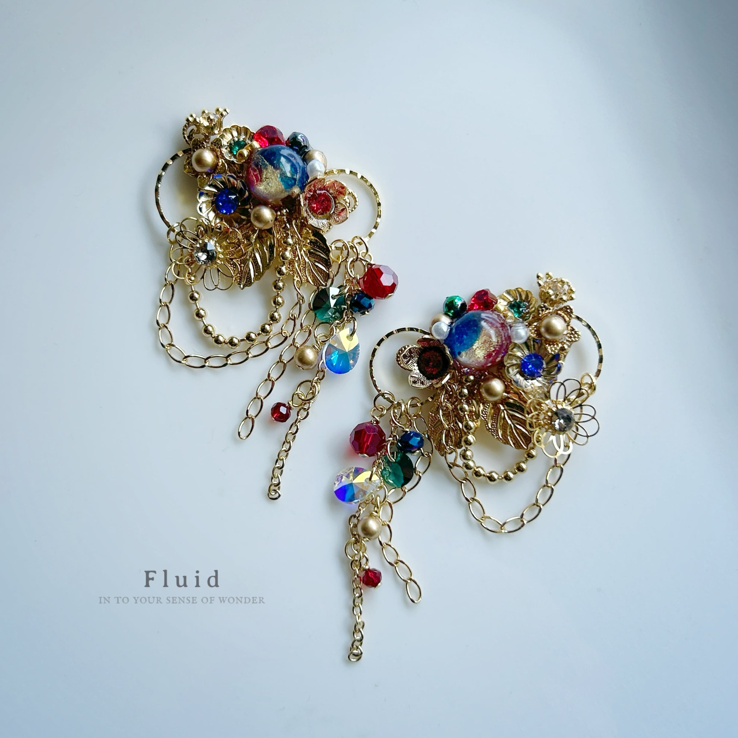 ガラス、メタルパーツ、樹脂、クレイ、その他沢山の素材を組み合わせ、一つ一つ手作業で作っています。樹脂及びクレイの色味は一つずつ調色しております。若干の個体差がありますことをご了承下さい。