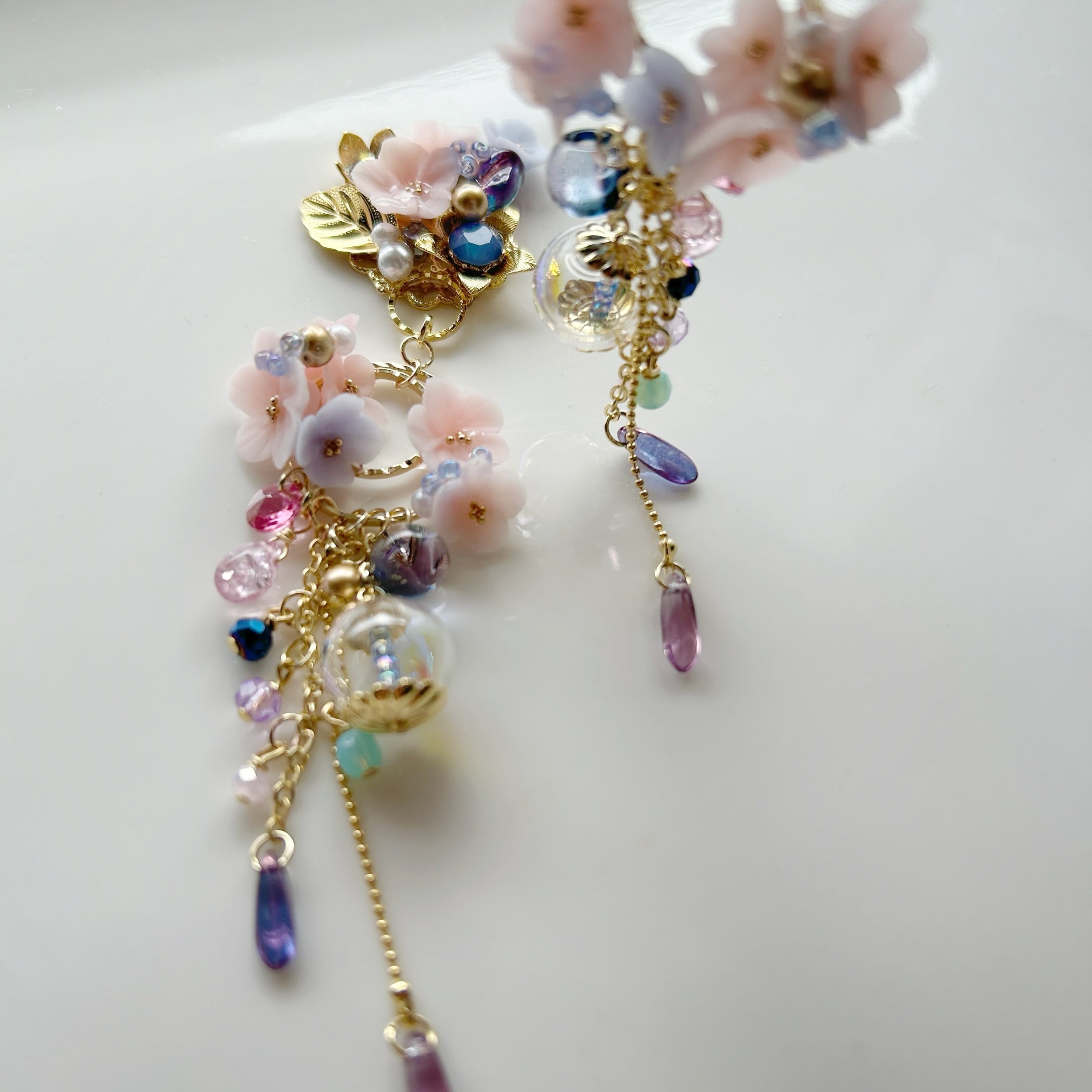クレイで一つ一つ手作りした桜と匂い立つスミレの花を合わせた、艶やかな春のデザインです。